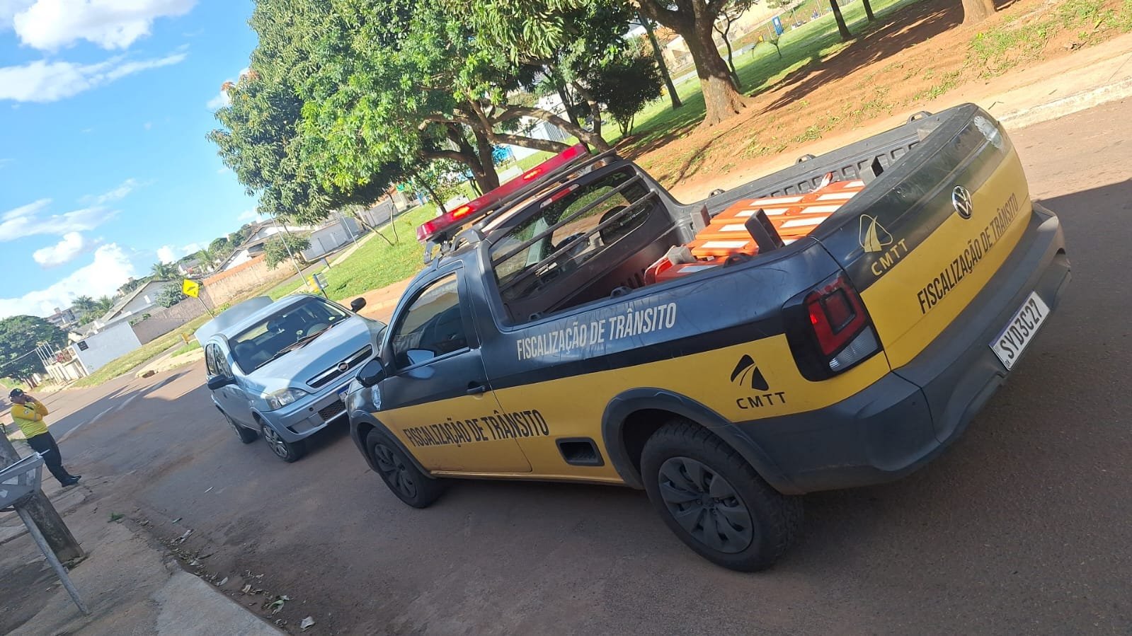 Durante a fiscalização, agentes da CMTT identificaram uma situação suspeita: um veículo estava parado no meio da via, com dois homens tentando trocar um pneu após colidirem com o meio-fio. Eles apresentavam sinais de possível alteração de comportamento, como indícios de embriaguez ou uso de substâncias ilícitas.