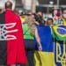 Bandeira da Ucrânia usada em ato não é símbolo neonazista