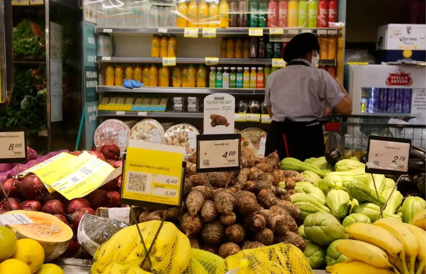 No grupo Alimentação e bebidas, que subiu 0,49%, destacaram-se as elevações da batata-inglesa (18,51%), do tomate (9,41%) e das carnes. Por outro lado, houve recuo nos preços do leite longa vida (-4,88%), do arroz (-1,93%) e do frango inteiro (-2,34%).