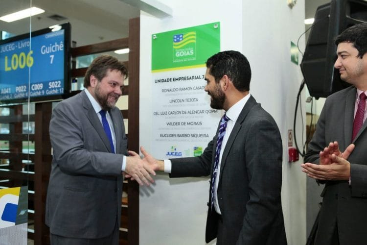 Ao lado do presidente da Junta Comercial do Estado de Goiás (Juceg), Euclides Barbo, o vice-governador Lincoln Tejota inaugurou nesta segunda-feira, 16, a Unidade Empresarial da Juceg, que a partir de agora atenderá toda a população, em especial os empresários goianos, na parte térrea do Palácio Pedro Ludovico.