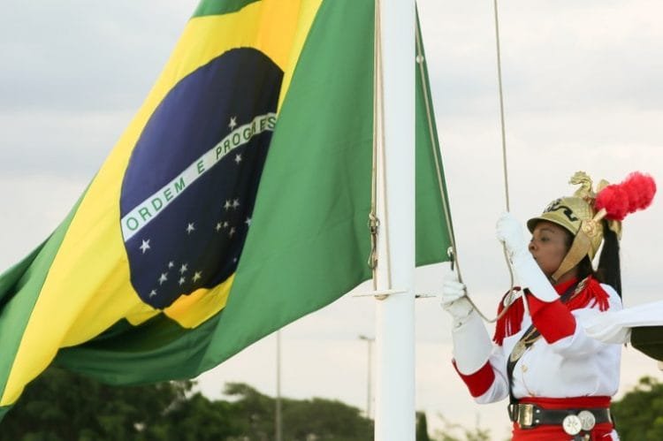 A bandeira nacional é hasteada diariamente às 8h e retirada às 18h, por guardas vestindo trajes históricos. Até esta sexta, apenas homens haviam participado da cerimônia na sede do Poder Executivo Federal.