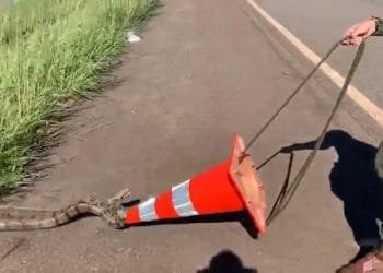Por Redação A polícia Rodoviária Federal e o Exército ajudaram uma Jibóia de dois metros a atravessar a BR 060...