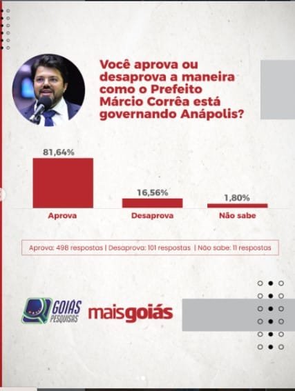 Para analistas, o desempenho de Márcio Corrêa reflete uma combinação de fatores, entre eles a visibilidade das ações administrativas, a capacidade de execução de projetos e a articulação política com o governo estadual. Em municípios de maior porte, onde a complexidade da gestão tende a ampliar críticas e pressões, índices superiores a 80% de aprovação são considerados incomuns. O levantamento reforça o protagonismo de Anápolis no cenário político regional e projeta o prefeito como um dos gestores mais bem avaliados do estado, em contraste com a disputa mais equilibrada observada em outras cidades goianas.