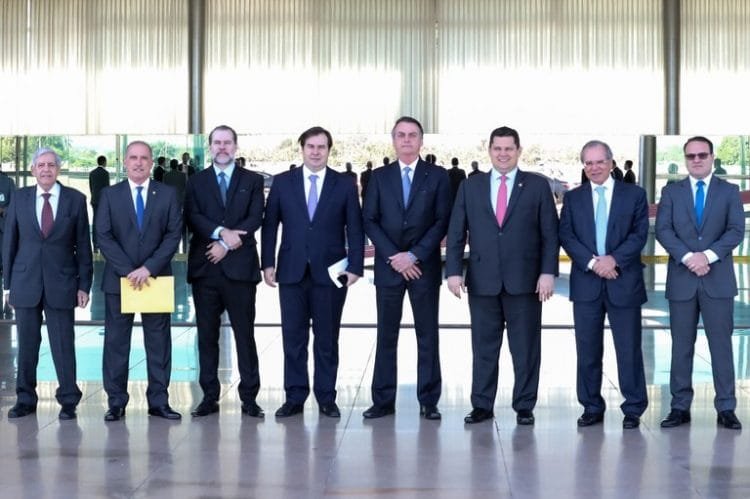 Para discutir o documento, estiveram reunidos o presidente da República, Jair Bolsonaro, os presidentes do Supremo Tribunal Federal Dias Toffoli, do Senado, Davi Alcolumbre, da Câmara dos Deputados, Rodrigo Maia, além dos ministros Onyx Lorenzoni, da Casa Civil; Paulo Guedes, da Economia, e Augusto Heleno, do Gabinete de Segurança Institucional.