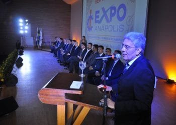 Presidente do Conselho Deliberativo Estadual do Sebrae Goiás discursa na abertura da exposição, que acontece no Centro de Convenções de ...