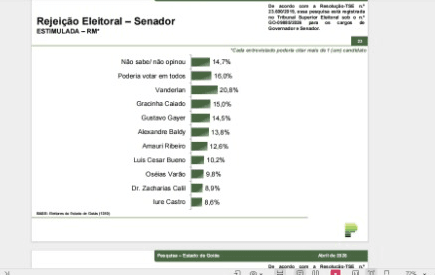 Vanderlan Cardoso lidera rejeição ao Senado com 20,8%, aponta Paraná Pesquisas